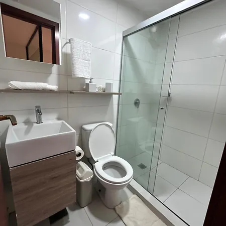 Mono Ambiente En Equipetrol Apartment has an adjoining terrace and a dressing area, and comforts such as air conditioning and a washing machine. This 1-bedroom apartment offers guests the convenient feature of a dryer and bath sheets in the bathroom. A separate toilet and a shower can also be found.